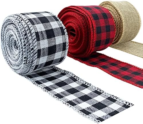 Amazon Com Whaline 3 Rolls Wired Edge Ribbons 30 Yards X 2 Inches Black Red Plaid Ribbon Black White Buffalo Plaid Ribbon And Burlap Craft Ribbon For Diy Gift Wrapping Christmas Fall Crafts