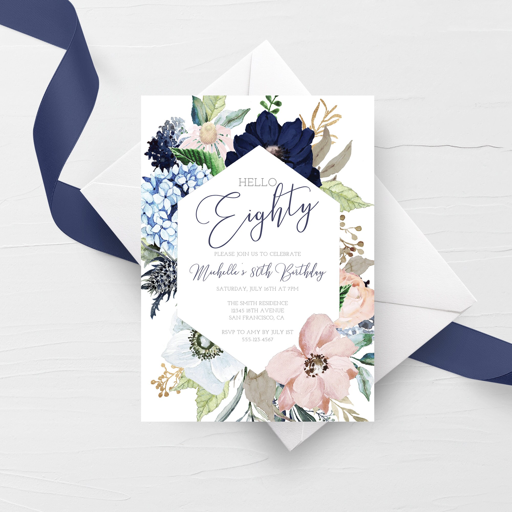 80th Birthday Invitation For Women Printable 80th Birthday Etsy De