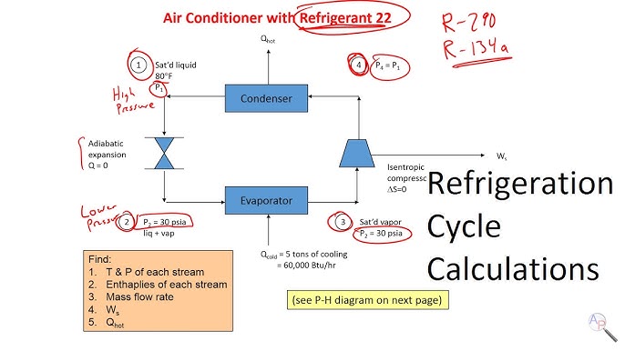Refrigeration Schematic And A Pressure Enthalpy Chart Youtube